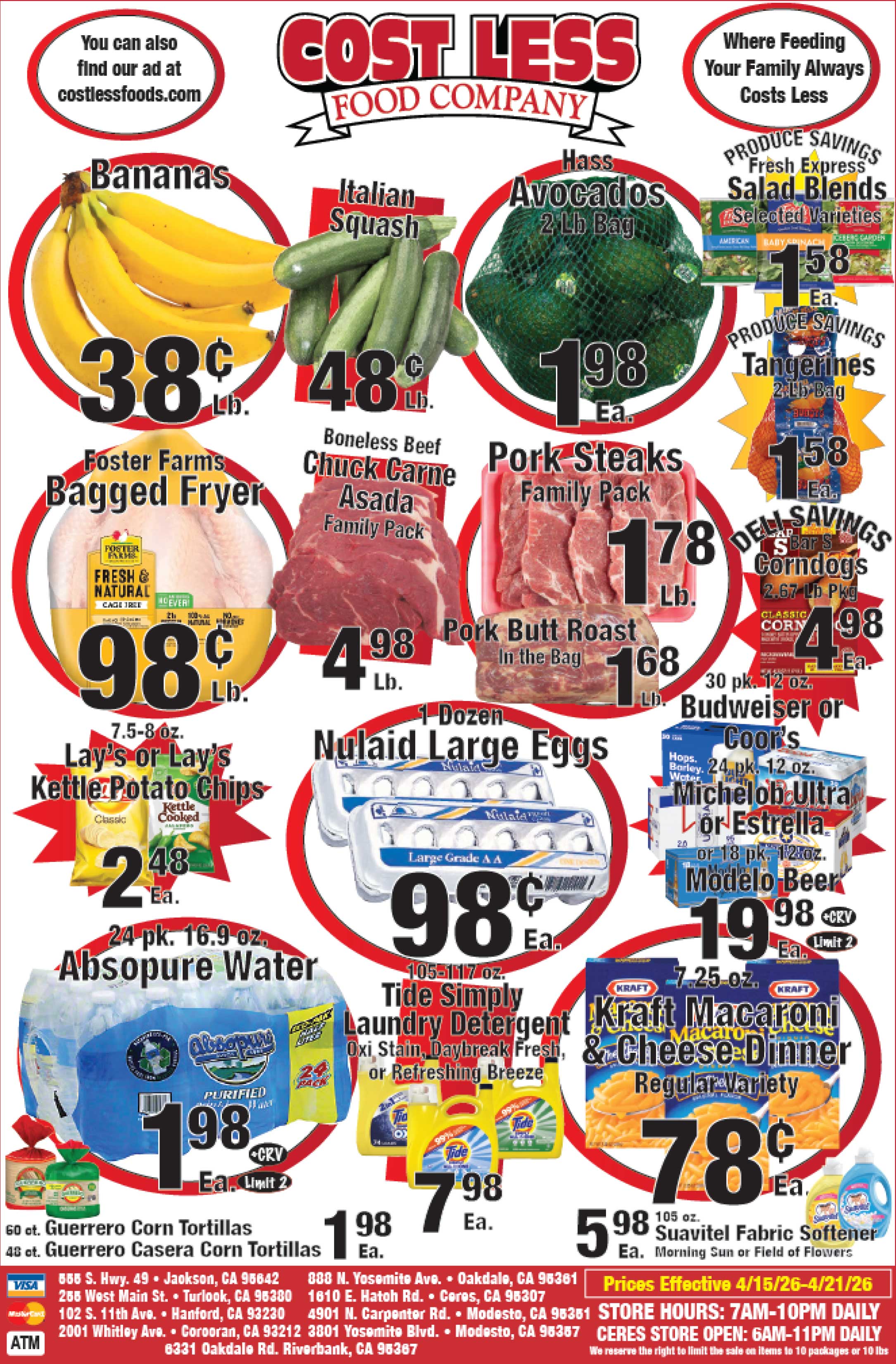 At Cost Less Food Company, we provide low pricing on all of our grocery items, especially our amazing meat and fresh produce. We have no membership fees and there are no gimmicks, just everyday low food prices. We go above and beyond to help our shoppers. Unlike our competition, we will bag your groceries and even help you back to your car. We love the communities we serve and and strive to give back in as many ways as possible. We donate to local charities and food drives that continue to help the communities that we are located in. At Cost Less Food Company we understand who keeps us in business, and that is why we go above and beyond to make your shopping trip as easy as possible. Stop by one of our stores for great savings and even better food!